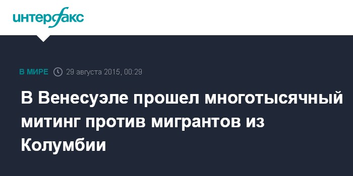 Москва. 29 августа. INTERFAX.RU - Массовый митинг сторонников властей Венесуэлы, собравшийся в центре столицы, Каракасе, приветствовал закрытие границы с Колумбией из-за наплыва мигрантов, сообщает Foхnews.Latino.