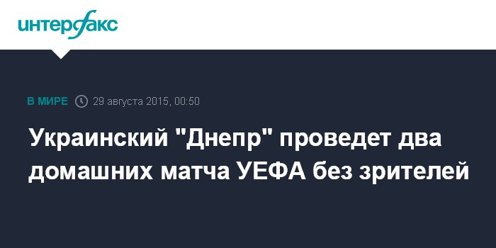 Москва. 29 августа. INTERFAX.RU - "Днепр" проведет два домашних матча группового турнира Лиги Европы УЕФА против "Лацио" и "Сент-Этьена" без зрителей.