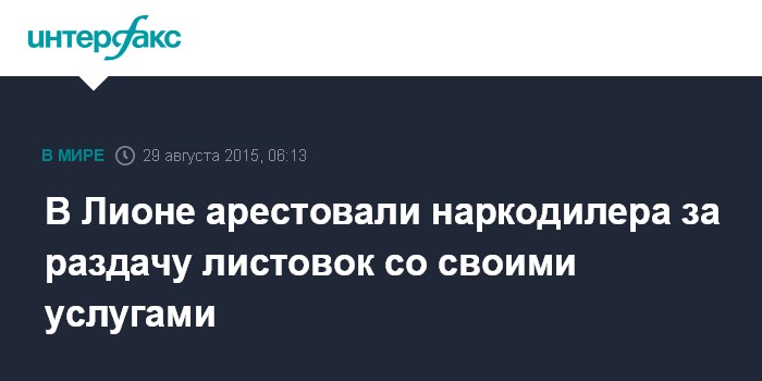 Москва. 29 августа. INTERFAX.RU - Во французском Лионе продавца каннабиса арестовали на улице прямо во время раздачи листовок с рекламой своего бизнеса, сообщает France24.
