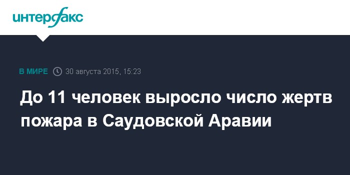 Москва. 30 августа. INTERFAX.RU - В результате пожара в жилом комплексе нефтяной компании Saudi Aramco в городе Аль-Хобар на востоке Саудовской Аравии погибли 11 человек, еще 219 человек, в том числе иностранные специалисты, пострадали, сообщили в воскресенье местные власти.