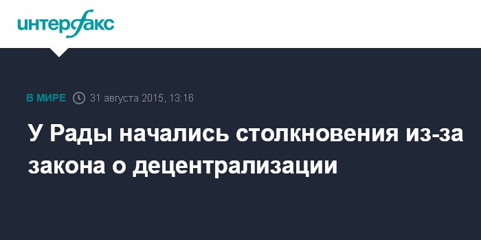 Москва. 31 августа. INTERFAX.RU - Между митингующими у стен парламента Украины и национальной гвардией начались стычки после принятия Радой в первом чтении законопроекта о внесении изменений в Основной закон в части децентрализации власти.