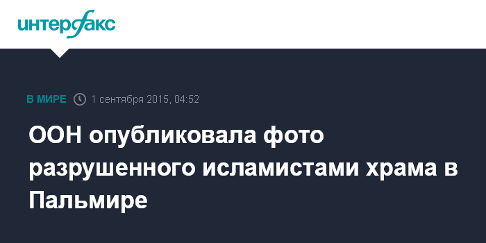 Москва. 1 сентября. INTERFAX.RU - Эксперты исследовательской программы UNOSAT при ООН опубликовали спутниковые фотографии, на которых видно, что главное здание храма Бэла в Пальмире полностью разрушено, сообщает "Би-би-си".