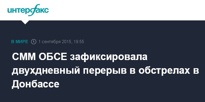 Москва. 1 сентября. INTERFAX.RU - В зоне конфликта на востоке Украины в течение двух дней не было зафиксировано использование тяжелого вооружения, говорится в отчете специальной мониторинговой миссии Организации по безопасности и сотрудничеству в Европе (СММ ОБСЕ) за 31 августа 2015 года, обнародованном во вторник.