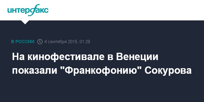 Официальная премьера "Франкофонии" состоится на острове Лидо в пятницу.