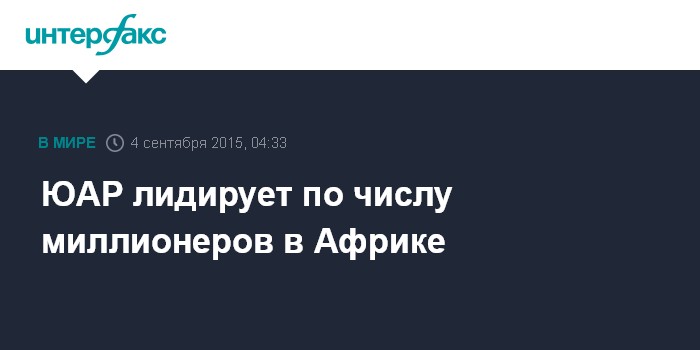 Москва. 4 сентября. INTERFAX.RU - В ЮАР проживает наибольшее количество долларовых миллионеров в Африке, сообщает BBC News.