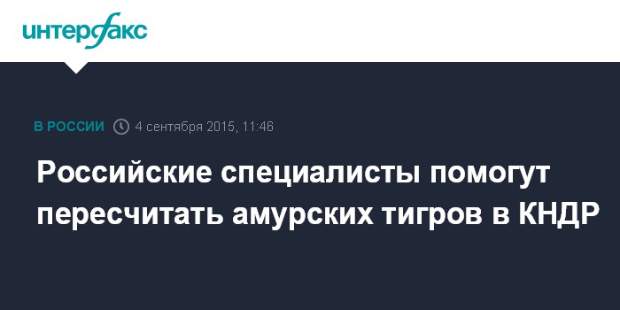 Москва. 4 сентября. INTERFAX.RU - Российские специалисты готовы принять участие в учете тигров и леопардов в Северной Корее, сообщает пресс-служба Минприроды РФ.