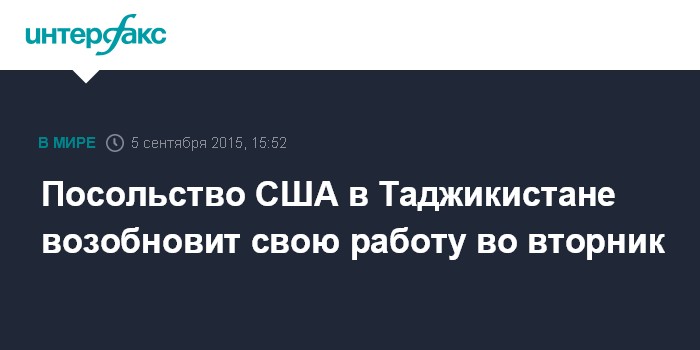 Посольство США в Таджикистане возобновит свою работу во вторник