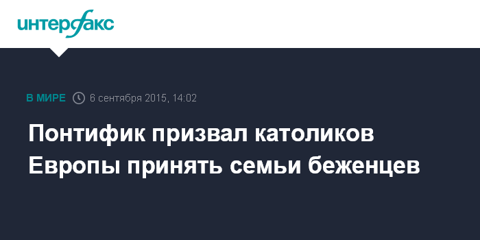 Москва. 6 сентября. INTERFAX.RU - Папа римский Франциск в воскресенье призвал все католические приходы, монастыри и храмы в Европе предоставить убежище беженцам.