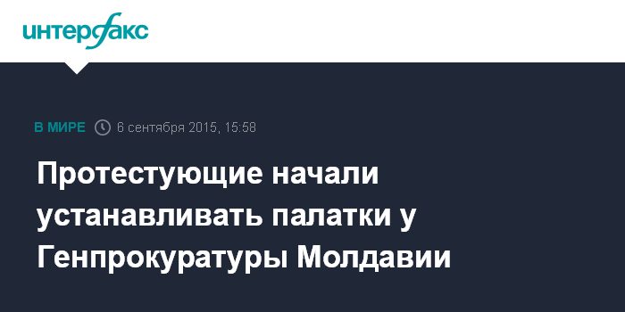 Москва. 6 сентября. INTERFAX.RU - Участники акции протеста у здания Генеральной прокуратуры Молдавии устанавливают палатки, чтобы начать бессрочные протесты.