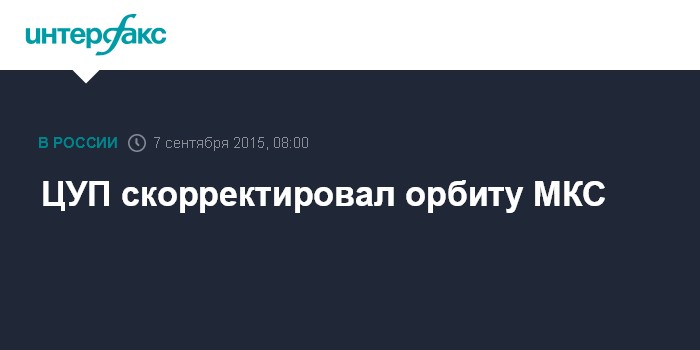 Москва. 7 сентября. INTERFAX.RU - Центр управления полетами в понедельник провел коррекцию орбиты Международной космической станции (МКС), сообщили "Интерфаксу" в ЦУПе.