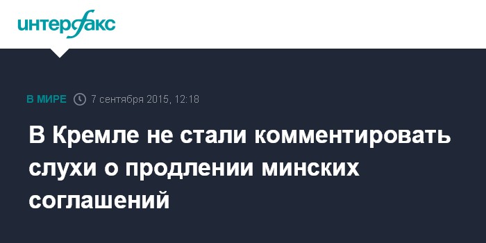 "Не могу сейчас сказать. Дело в том, что там, в самих минских договоренностях, прописаны очень четкие сроки, но сейчас мы видим не совсем соответствие происходящего с теми сроками, которые указаны", - сказал Песков журналистам, отвечая на вопрос "Интерфакса" о том, как в Кремле относятся к возможности продления срока выполнения минских договоренностей.