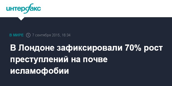 По данным полиции города, это на 70% превышает количество случаев исламофобии, произошедших с июля 2013 года по июль 2014 года, сообщает в понедельник сайт газеты The Guardian.