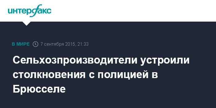 Москва. 7 сентября. INTERFAX.RU - Манифестация сельхозпроизводителей в квартале учреждений ЕС в Брюсселе завершилась беспорядками и погромом.