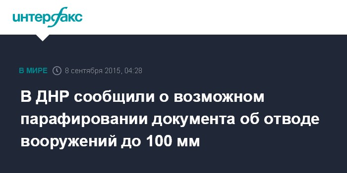 В ДНР сообщили о возможном парафировании документа об отводе вооружений до 100 мм