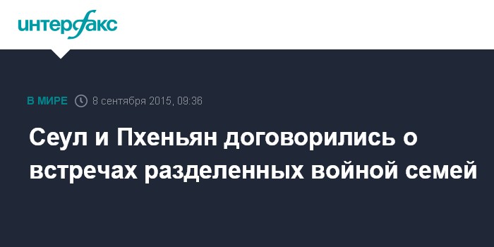Москва. 8 сентября. INTERFAX.RU - Южная Корея и КНДР договорились провести в октябре встречи разделенных Корейской войной семей, передает во вторник агентство AP.