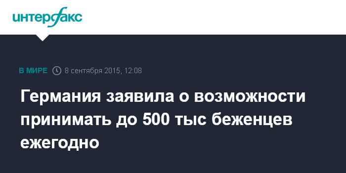 Германия заявила о возможности принимать до 500 тыс беженцев ежегодно