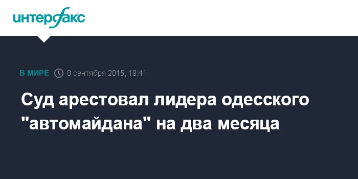 Москва. 8 сентября. INTERFAX.RU - Приморский районный суд Одессы арестовал лидера одесского "автомайдана" Евгения Резвушкина до 7 ноября.