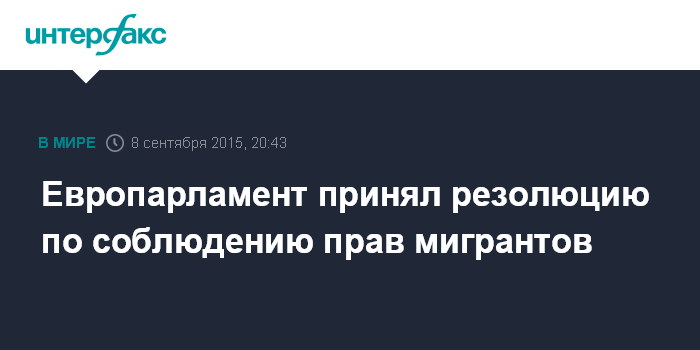 Москва. 8 сентября. INTERFAX.RU - Депутаты Европарламента приняли во вторник незаконодательную резолюцию, в которой выразили обеспокоенность тем, что основные гражданские права просителей убежища в ЕС могут нарушаться при поспешных решениях об их выдворении, а также применением заграждений из колючей проволоки и других "мер сдерживания" в отношении мигрантов.