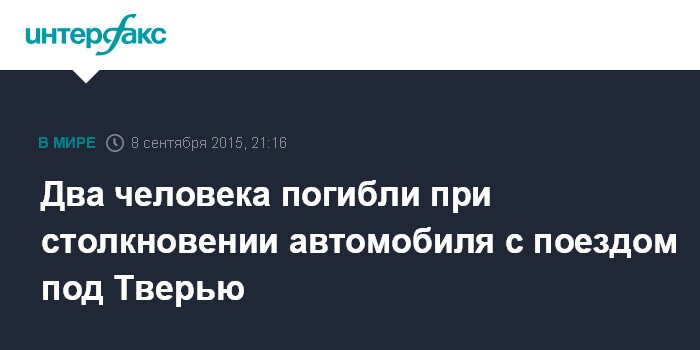 Москва. 8 сентября. INTERFAX.RU – Авария с участием товарного поезда и легковушки произошла в Тверской области, сообщили "Интерфаксу" в пресс-службе регионального управления МЧС России.