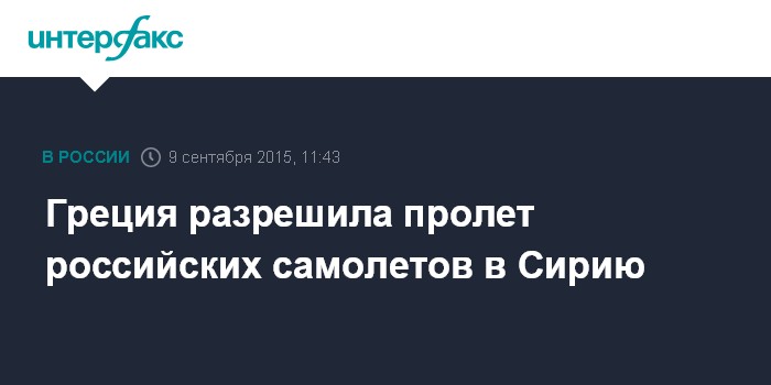 Москва. 9 сентября. INTERFAX.RU – Афины разрешили пролет российских самолетов в Сирию через греческое воздушное пространство, заявили в среду в посольстве РФ в Греции.