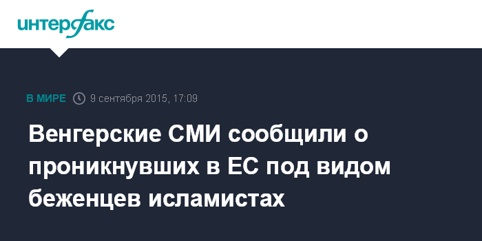 Москва. 9 сентября. INTERFAX.RU - Среди беженцев, проникших в одну из стран Европы, выявлены двое исламских радикалов, сообщает в среду венгерский телеканал М1.