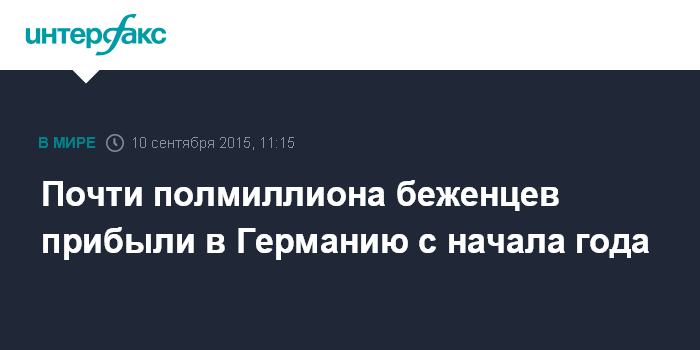 Москва. 10 сентября. INTERFAX.RU - Не менее 450 тыс. беженцев прибыли в Германию с января этого года, заявил в четверг вице-канцлер ФРГ Зигмар Габриэль.