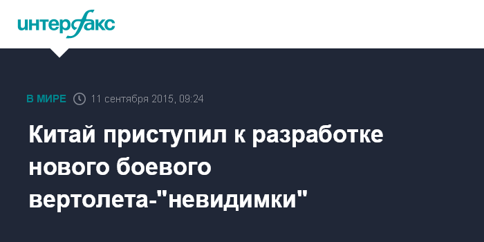 Китай приступил к разработке нового боевого вертолета-"невидимки"