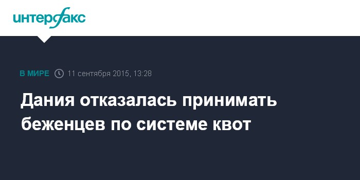Москва. 11 сентября. INTERFAX.RU - Дания не будет принимать участие в распределении квот для размещения 160 тыс. беженцев, передает в пятницу агентство Ritsaus.