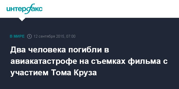 Два человека погибли в авиакатастрофе на съемках фильма с участием Тома Круза