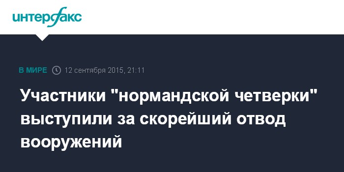 Москва. 12 сентября. INTERFAX.RU - Все участники встречи в "нормандском формате" в Берлине согласны с необходимостью как можно быстрее заключить и реализовать договоренность об отводе от линии соприкосновения сторон в Донбассе легких и тяжелых вооружений.