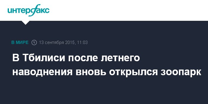 Москва. 13 сентября. INTERFAX.RU - Частично восстановленный Тбилисский зоопарк, серьезно пострадавший во время разрушительного паводка в грузинской столице в июне нынешнего года, в воскресенье возобновил свою работу.