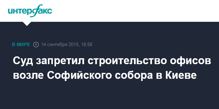 Москва. 14 сентября. INTERFAX.RU - Прокуратура Киева добилась запрета на строительство офисного центра возле Софийского собора.
