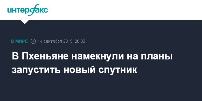 Москва. 14 сентября. INTERFAX.RU - Директор ведомства по развитию национальных аэрокосмических технологий КНДР заявил в интервью северокорейскому агентству ЦТАК, что Пхеньян находится в финальной стадии разработки нового геостационарного спутника.