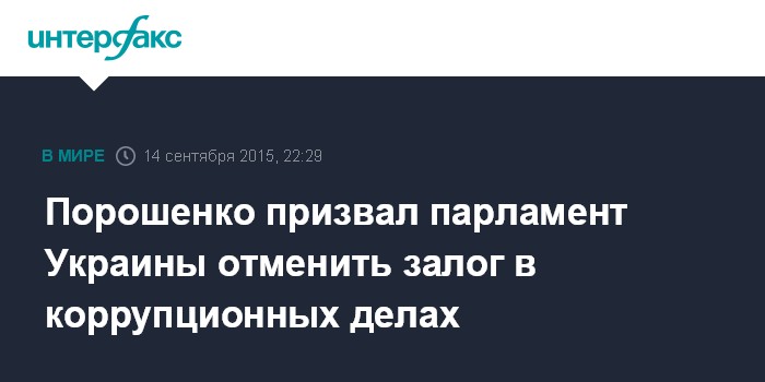 Москва. 14 сентября. INTERFAX.RU - Президент Украины Петр Порошенко в ходе встречи с руководителями фракции коалиции, призвал найти компромисс внутри коалиции относительно предложенного им законопроекта о повышении или отмене минимальной суммы залога при избрании меры пресечения по приговорам, связанным с коррупцией, сообщает пресс-служба главы государства.