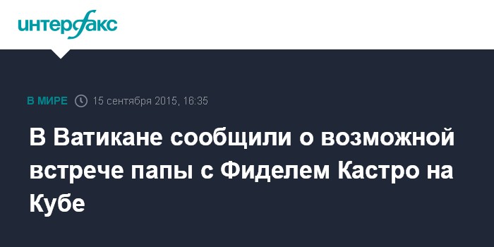 Москва. 15 сентября. INTERFAX.RU - Папа римский Франциск может в ходе своего визита на Кубу встретиться с экс-лидером страны Фиделем Кастро, сообщили во вторник в Ватикане.