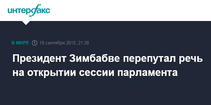 Москва. 15 сентября. INTERFAX.RU - 91-летний президент Зимбабве Роберт Мугабе во вторник допустил ошибку на открытии новой сессии парламента, когда зачитал речь, с которой он уже обращался к парламенту в прошлом месяце, передает BBC.