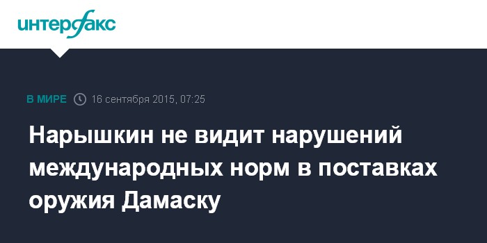 Нарышкин не видит нарушений международных норм в поставках оружия Дамаску