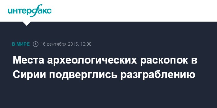 Москва. 16 сентября. INTERFAX.RU - Разграбление мест археологических раскопок в Сирии происходит в "промышленных масштабах", а вырученные средства используются для финансирования боевиков ИГИЛ, сообщила в среду гендиректор ЮНЕСКО Ирина Бокова.