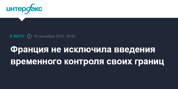 Москва. 16 сентября. INTERFAX.RU - Франция не будет колебаться, если возникнет необходимость введения временного контроля границ страны, заявил в среду премьер-министр Франции Манюэль Вальс.