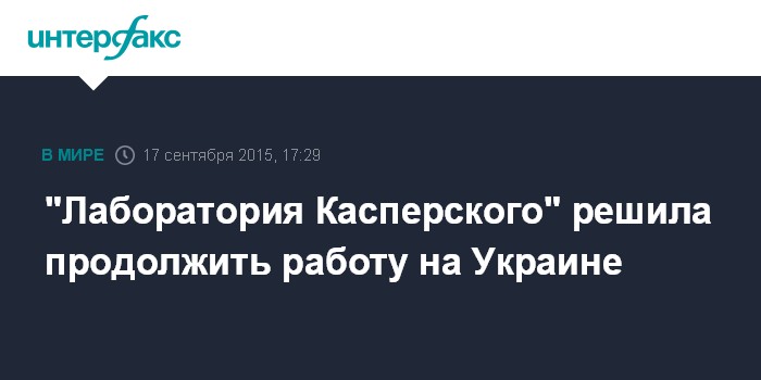 Москва. 17 сентября. INTERFAX.RU - "Лаборатория Касперского", программное обеспечение которой теперь запрещено использовать госорганам Украины, продолжит работать в других сегментах рынка этой страны.