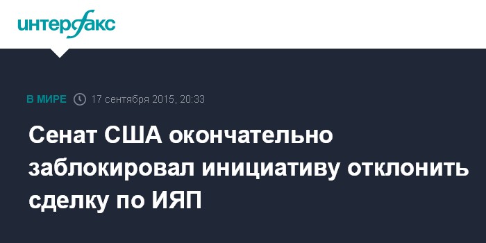 Сенат США окончательно заблокировал инициативу отклонить сделку по ИЯП