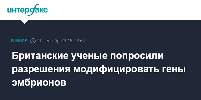 Если государственный регулятор даст разрешение, то Великобритания станет второй страной, в которой проводятся генетические эксперименты над человеческими эмбрионами. Первопроходцами в этой области стали китайские ученые, которые модифицировали генетический код человека в апреле текущего года.