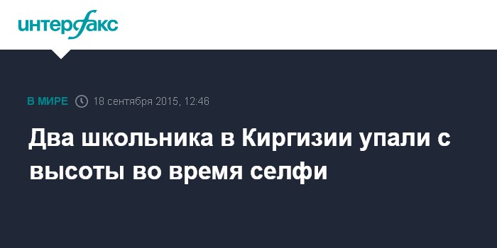Москва. 18 сентября. INTERFAX.RU - В киргизском городе Таш-Кумыр разбились два шестилетних мальчика, которые пытались сделать селфи на фоне баннера одной из партий, участвующей в парламентских выборах, сообщили "Интерфаксу" в пресс-службе МЧС республики.