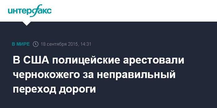 Москва. 18 сентября. INTERFAX.RU - В калифорнийском городе Стоктон сразу девять полицейских приняли участие в задержании 16-летнего афроамериканца, переходившего дорогу в неположенном месте, сообщила в пятницу The Guardian.