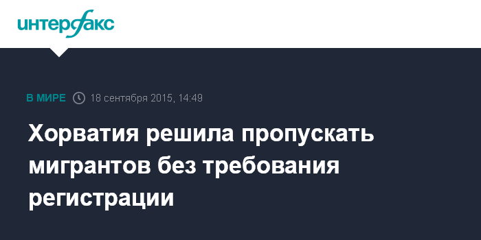 Москва. 18 сентября. INTERFAX.RU - Премьер-министр Хорватии Зоран Миланович заявил, что страна уже не справляется с наплывом мигрантов и намерена пропускать всех приезжих через свою территорию дальше, на запад и север Европы.