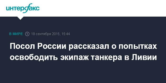 Москва. 18 сентября. INTERFAX.RU - Посольство РФ в Ливии предпринимает усилия для освобождения экипажа нефтеналивного танкера "Механик Чеботарев", задержанного накануне ливийскими военными.