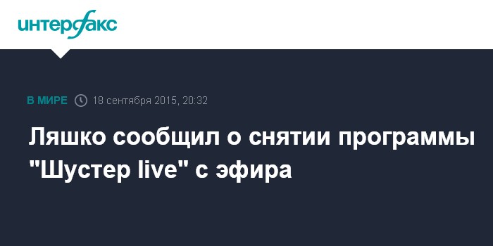 Москва. 18 сентября. INTERFAX.RU - Лидер Радикальной партии Олег Ляшко заявляет, что общественно-политическое ток-шоу "Шустер live", которое должно было быть показано в эфире украинского телеканала "1+1" в пятницу вечером, снимают с эфира по приказу из администрации президента Украины.