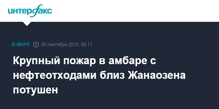 Москва. 20 сентября. INTERFAX.RU - Пожар в амбаре по сливу нефтеотходов близ города Жанаозена Мангистауской области ликвидирован, сообщил первый заместитель акима области Суиндик Алдашев, возглавляющий оперативный штаб по ликвидации возгорания нефтеамбара.