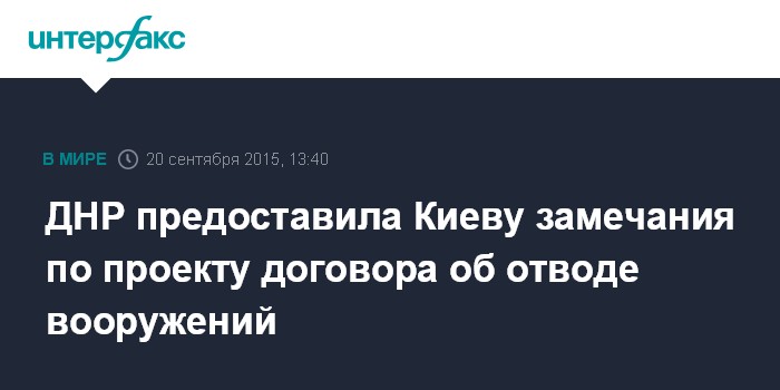 ДНР предоставила Киеву замечания по проекту договора об отводе вооружений