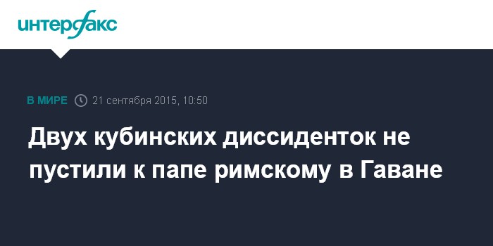 Москва. 21 сентября. INTERFAX.RU - Двух кубинских диссиденток, приглашенных в кафедральный собор Гаваны на вечернюю молитву с папой римским Франциском, задержала полиция, сообщила в понедельник испанская газета El Pais.